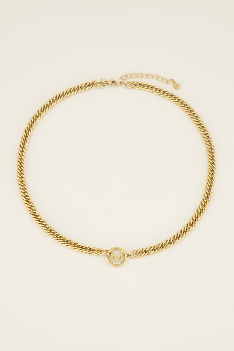 این گردنبند دارای زنجیر و پلاک طرح M است و در آن 2 گرم طلا استفاده شده است .